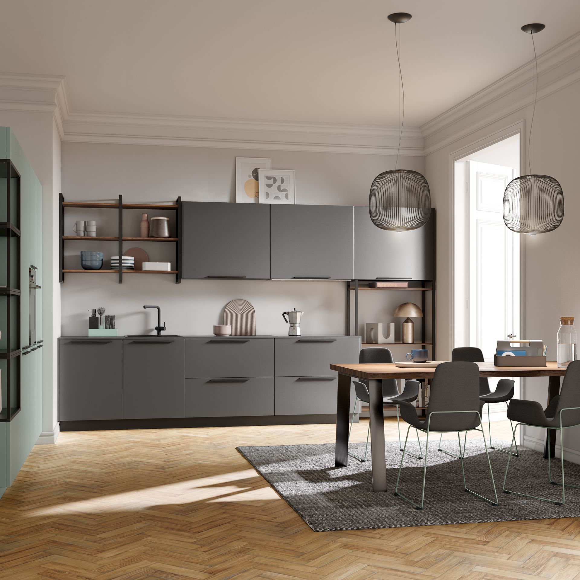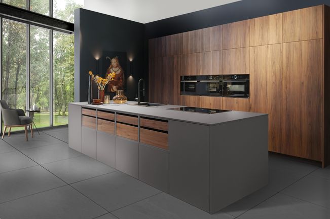 Besondere Schwerpunkte im Sortiment bieten individuelle Echtlackvarianten, haptisch ansprechenden Glas- und Dickfurnier-Oberflächen sowie umfangreiche Sonderanfertigungen.