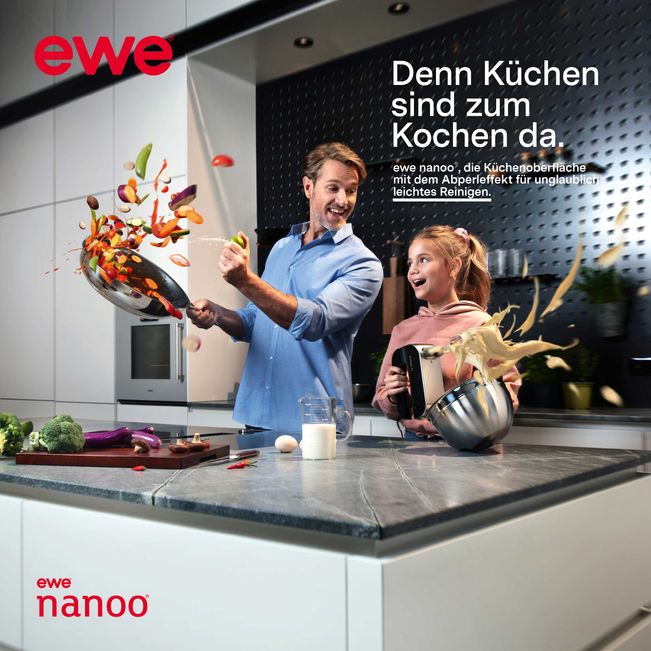 ewe nanoo® die reinigungsfreundliche Küchenoberfläche mit Abperleffekt