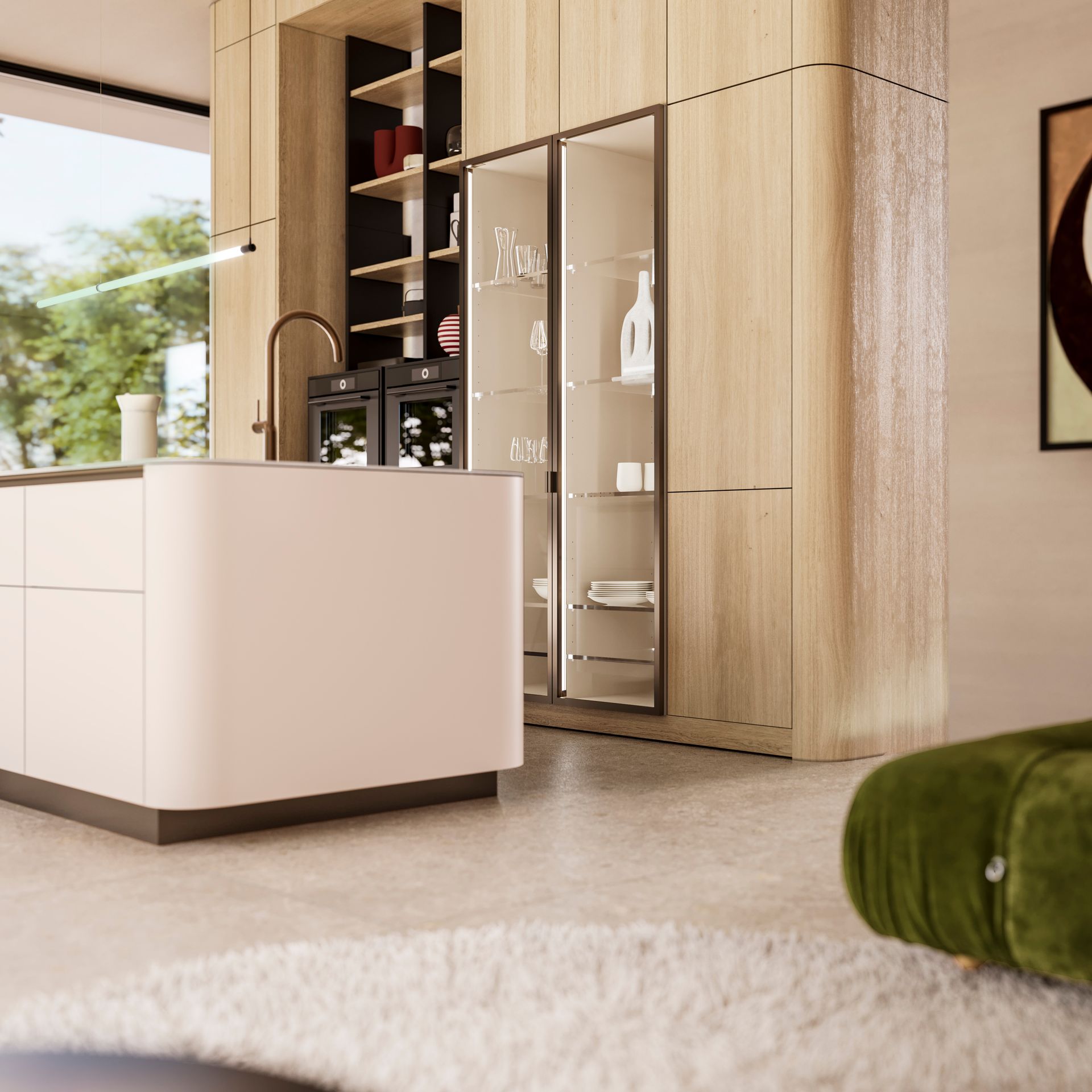 Mit neuen Rundwangen für Möbelfronten erweitert die Architekturküche LEICHT ihre gestalterische Vielfalt für Küchen- und Wohnraumplanungen. Die abgerundeten Wangen schaffen sanfte Übergänge und unterstreichen den fließenden Charakter moderner Wohn- und Küchenräume – eine Antwort auf die wachsende Nachfrage nach organischen, einladenden Interieurs. Die Rundwangen sind im gesamten Mattlackprogramm sowie in ausgewählten Holzprogrammen von LEICHT verfügbar. In Kombination mit passenden Radien für Arbeitsplatten entstehen elegante und ausdrucksstarke Raumgestaltungen, die Wohnlichkeit und Design miteinander verbinden.
