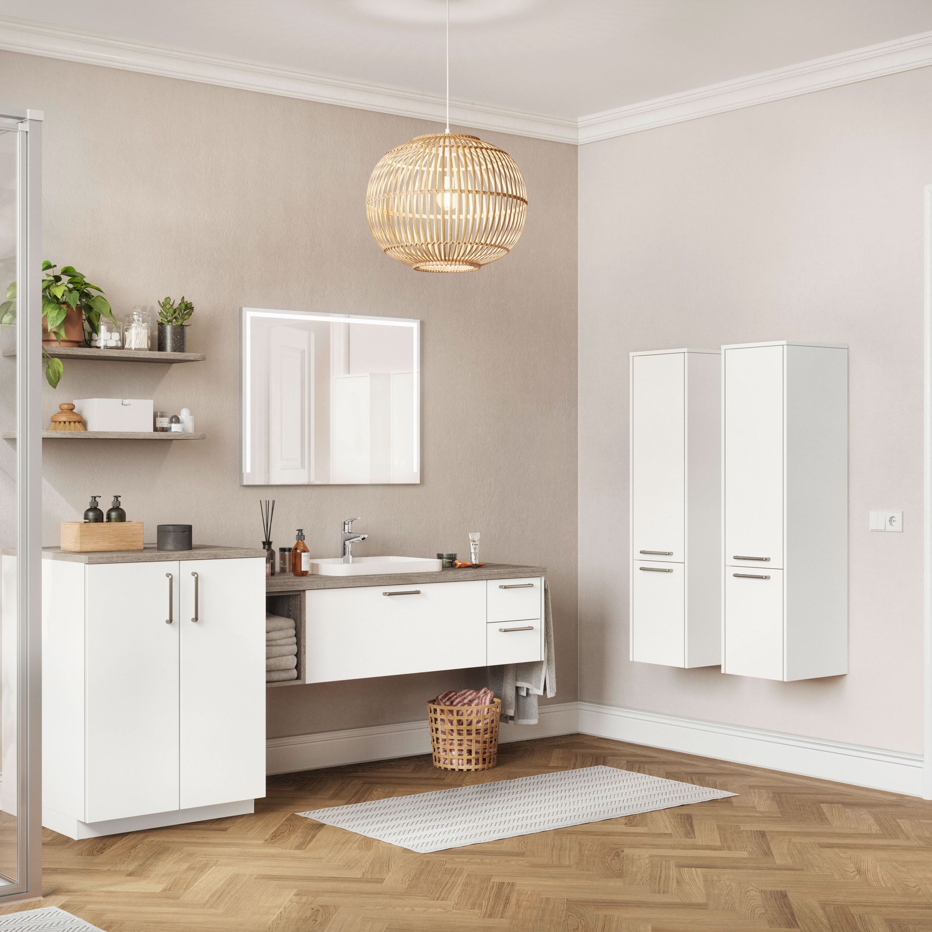 Unterschiedlichste Möglichkeiten prägen hier den Stil und das Ambiente. Hier können Sie Ihrer Kreativität freien Lauf lassen und aus einer breiten Palette wählen: Von Echtholz bis zu großformatigen Fliesen und vom Wandputz bis zu Natursteinen und Glas.
