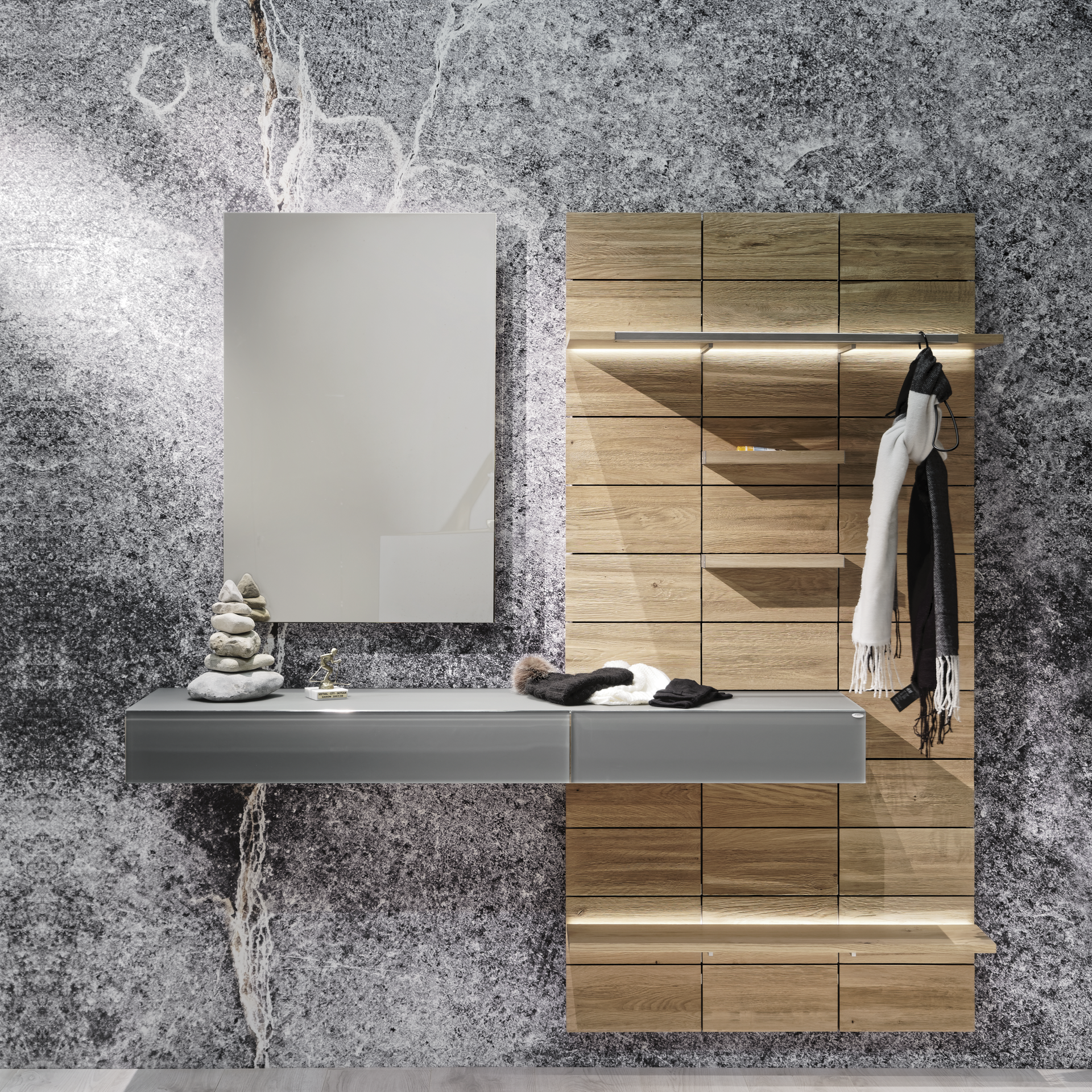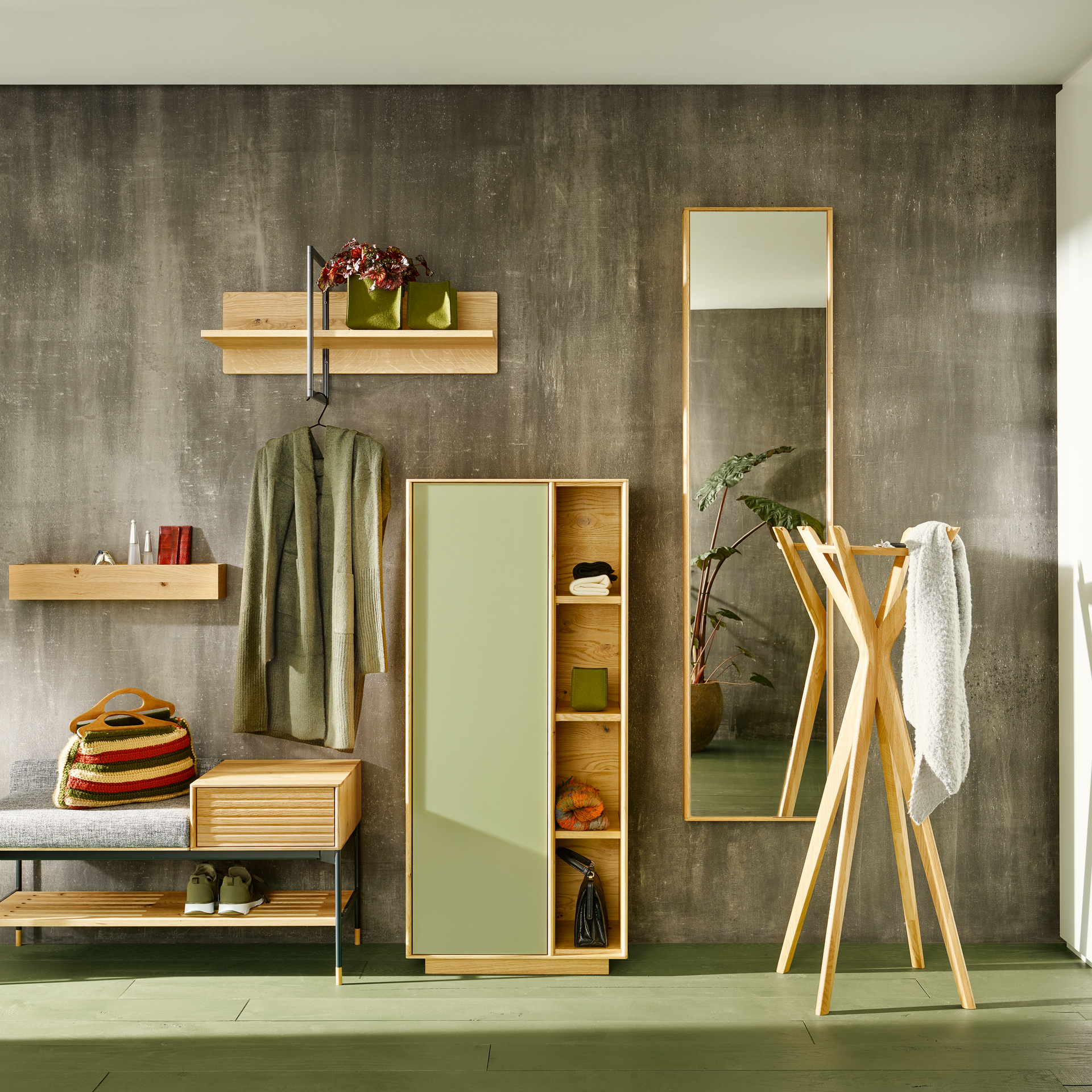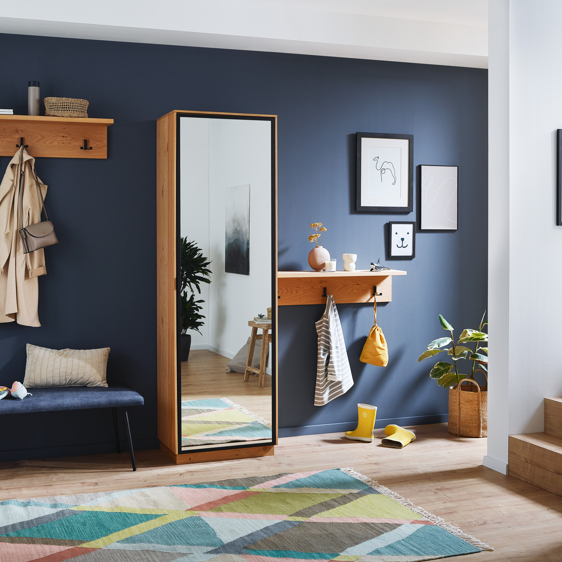 Als Visitenkarten für die eigenen 4 Wände vermittelt der Garderobenbereich den Designeinstieg in Ihre Wohnung. Außerdem bietet er Stauraum für alles, was man beim Kommen und Gehen so braucht. Von den Gummistiefeln bis zur Hutablage. Die Handtaschen, Mäntel, Mützen und viele weitere Accessoires nicht zu vergessen.